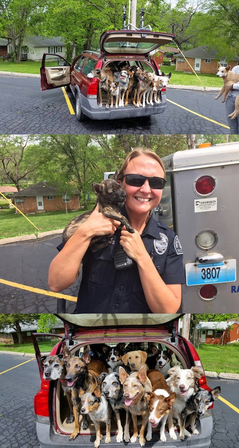 Officers were dispatched to 23rd and Harris to assist Animal Control on an unusual call. Someone thought it was suspicious when they saw about 20 dogs in a car. It turned out that these rescue dogs were all well taken care of and just on their way to a dog show. They are all trained and apparently have their own special talents. Some of the little ones are still in training and only know how to give kisses."