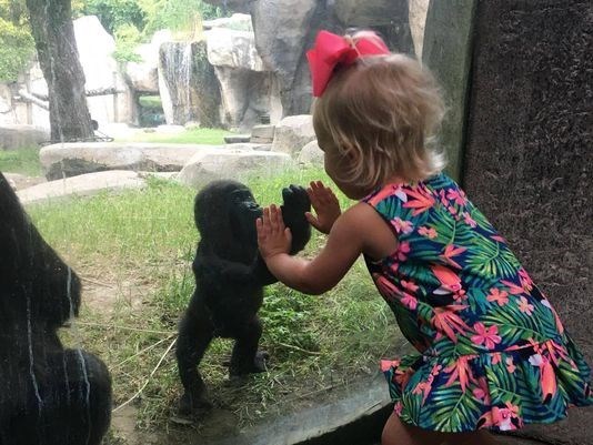 From the Fort Worth Zoo's Facebook page: "As he gets older, Gus is exploring more and more of the world around him, which includes encounters with new friends like Braylee of Fort Worth."