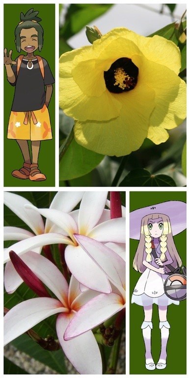 Hau is based on the Hau Flower (or Hibiscus Tiliacius) and Lillie is based on the Hawaiian Spider (or Queen Emma) Lily.