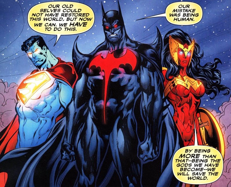 There is DC Comic in which Batman, Superman and Wonder Woman become gods.