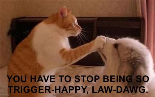 YOU HAVE TO STOP BEING SO TRIGGER-HAPPY, LAW-DAWG.