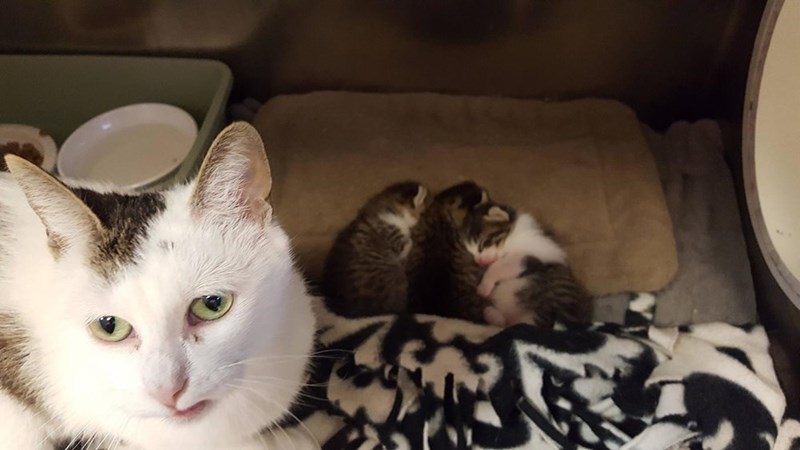 A grieving couple is visited by a friendly stray one week after losing their senior cat, but discovered she was a pregnant package deal: 'We decided to keep them all together.'