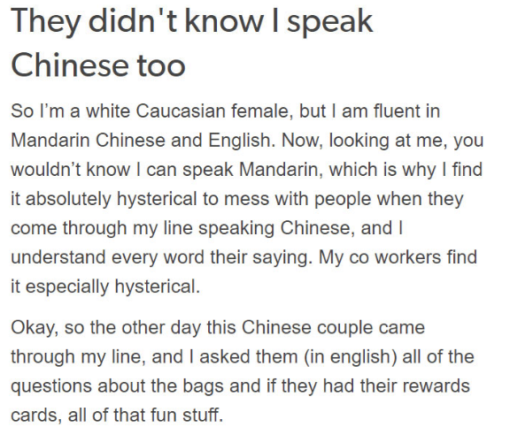 Rude Chinese Customer Doesn't Know White Cashier Speaks Mandarin Chinese