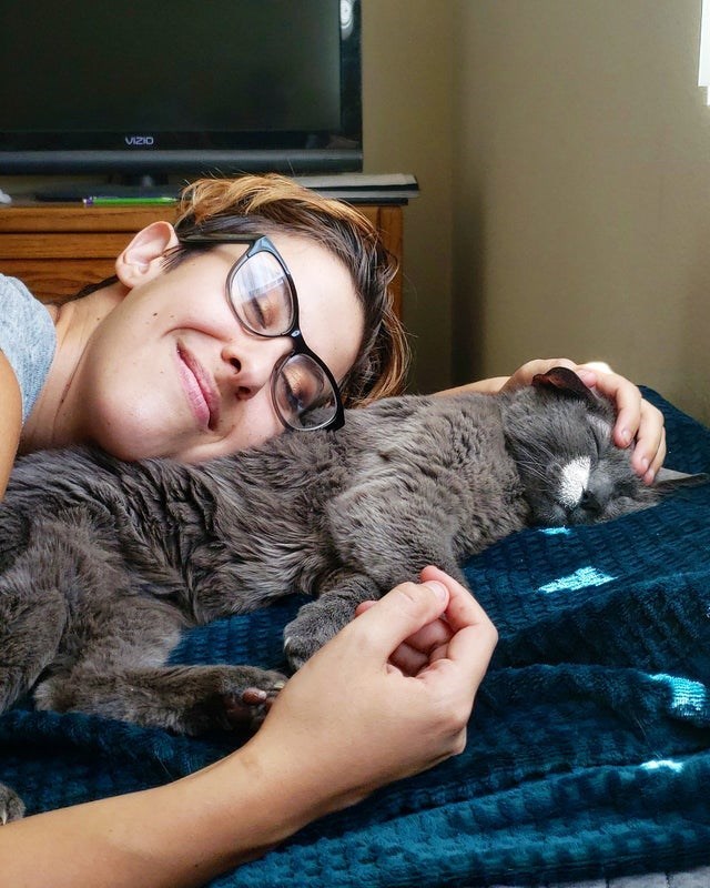 "Saw a post online about a sweet 18 year old kitty in the shelter, and thought to myself "well thats unacceptable". Brought her home the same day. This is Kiarra, we're very happy shes home with us now"