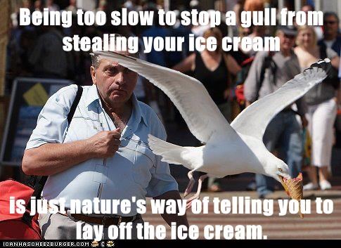 Being too slow to stop a gull from stealing your ice cream is just nature's way of telling you to lay off the ice cream.