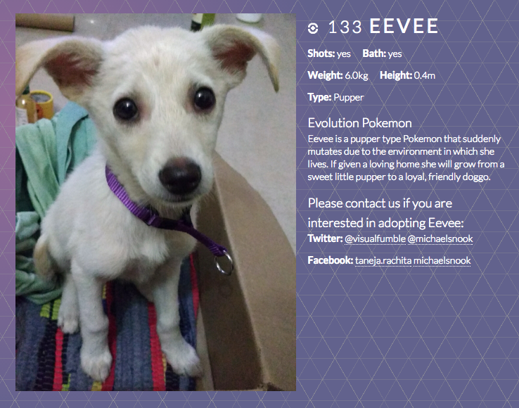 Sweet Woman in India Rescues a Stray Dog, Names Her Eevee, and Creates a Pokemon GO Style Website to Get Her Adopted