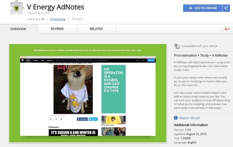 "V AdNotes will help improve your study a bit by turning forgettable ads into memorable study notes.