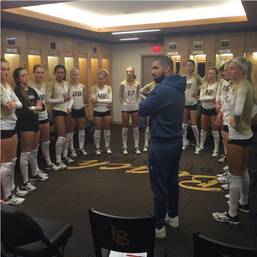 Drake showed up to wish luck to his Goddaughter's college volleyball team. The appearance of this "volleyball coach Drake" picture on Instagram was just too good not to meme.