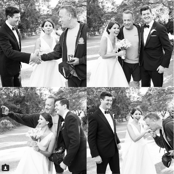 Yesterday's wedding was so beautiful! Elisabeth and Ryan you planned one amazing celebration. The icing on the cake was @tomhanks stopping in Central Park to wish them congratulations.