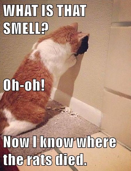 WHAT IS THAT SMELL? Oh-oh! Now I know where the rats died.
