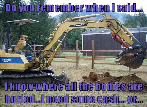 Do you remember when I said... I know where all the bodies are buried...I need some cash... or...