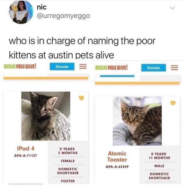 Someone's Giving The Cats At Austin Pets Alive! A Ton Of Ridiculous Names
