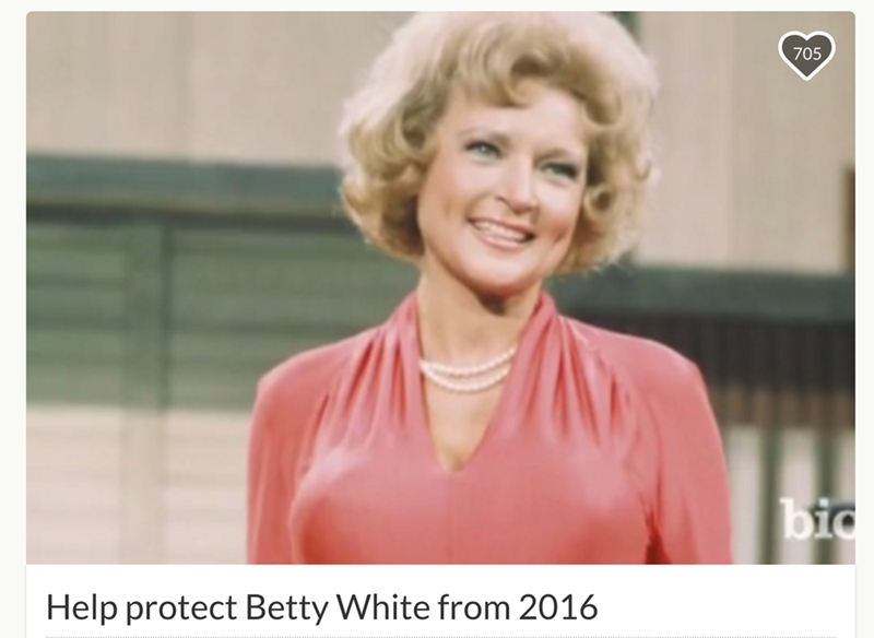2016 has been a hell of a year and it seems like NO ONE is safe from what the internet has been calling the worst calendar year ever. We still have a few days left before we can all breathe a sigh of relief and move on to complaining about how much worse 2017 is. That's why this brave man has set up a fund to protect national treasure, Betty White, from 2016. From the GoFundMe page, here is his pitch:
