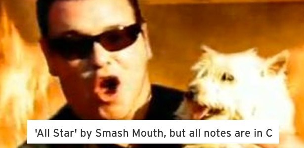 Perfect. Have I got the song for you. Then you have got to listen to this version of Smash Mouth’s immortal “All Star.” What’s so special about it? Well, all of the notes in the song are auto-tuned to C. This is a disorienting, terrifying, and maddening ride that will make your week very, very weird.