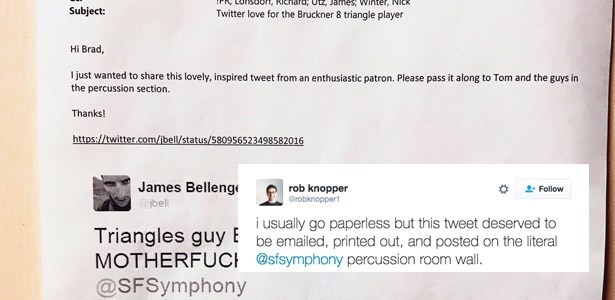 i usually go paperless but this tweet deserved to be emailed, printed out, and posted on the literal @sfsymphony percussion room wall. pic.twitter.com/8XrzFAYVTc