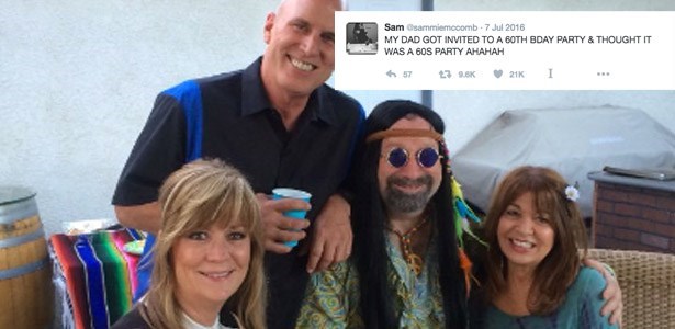 MY DAD GOT INVITED TO A 60TH BDAY PARTY & THOUGHT IT WAS A 60S PARTY AHAHAH pic.twitter.com/8rVz9wMMoZ— Sam (@sammiemccomb) July 8, 2016