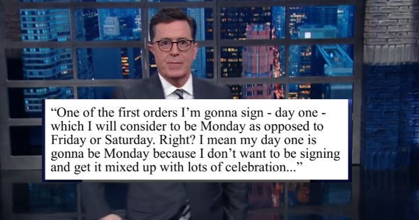 Stephen Colbert Is Here to Talk About How Trump Appears to Be Ready for Day One-ish
