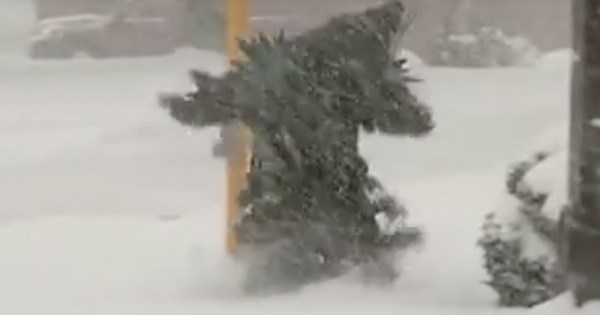In the middle of this week's east coast blizzard, a Western Massachusetts meteorologist was doing a live report, when a some... thing walked across the background.