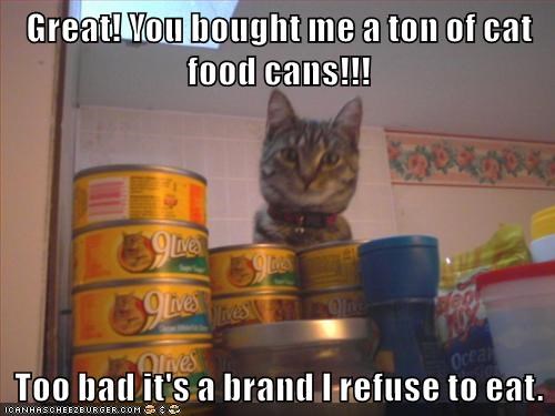 Great! You bought me a ton of cat food cans!!! Too bad it's a brand I refuse to eat.