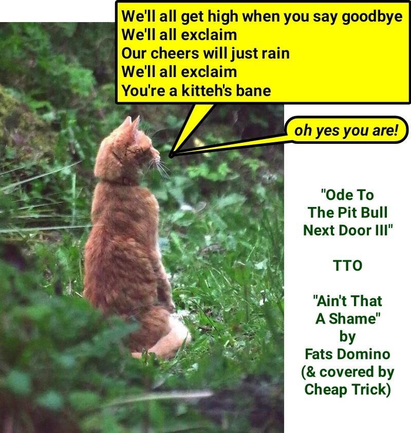 "Ode To The Pit Bull Next Door III" (TTO "Ain't That A Shame" by Fats Domino [& covered by Cheap Trick]) (recaption http://tinyurl.com/mqoskfo