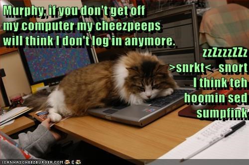 Murphy, if you don't get off my computer my cheezpeeps will think I don't log in anymore. zzZzzzZZz >snrk