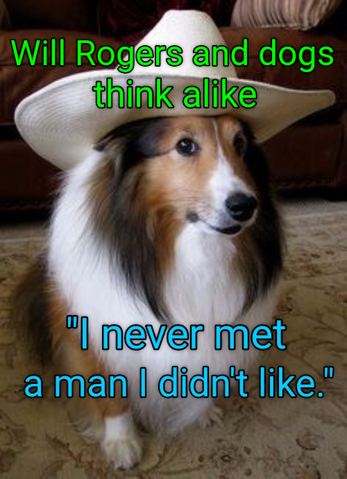 Will Rogers and dogs are both man's best friend.