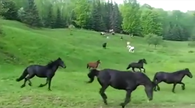 Wild, wild horses, running in pure joy across green fields.