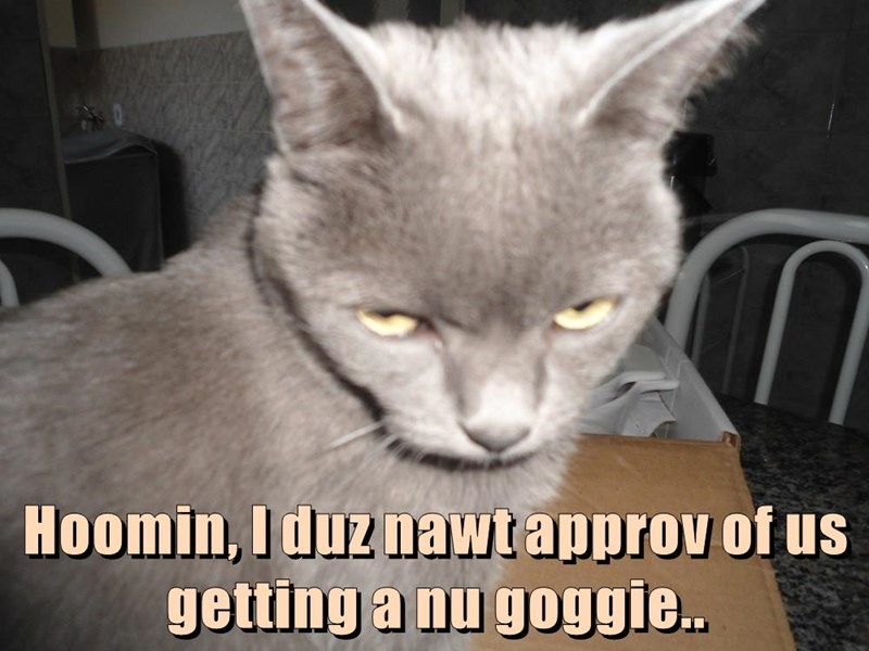 Hoomin, I duz nawt approv of us getting a nu goggie..