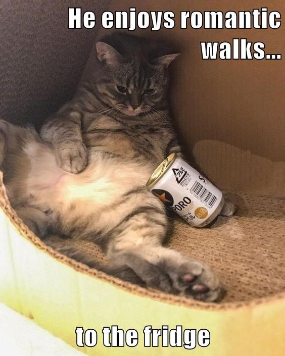 He enjoys romantic walks... to the fridge