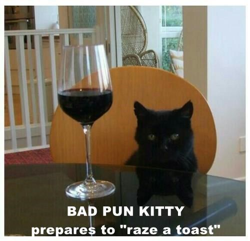 BAD PUN KITTY prepares to "raze a toast"