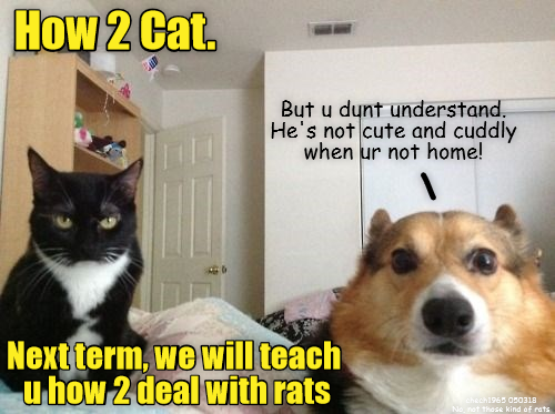 Nice try, dog. Being a cat is an art form and this one has mastered it.