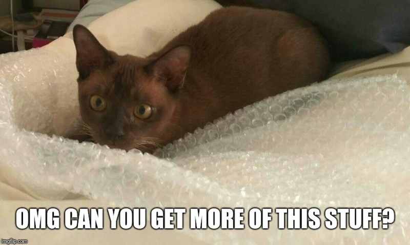 Cat discovers existence of bubble wrap.