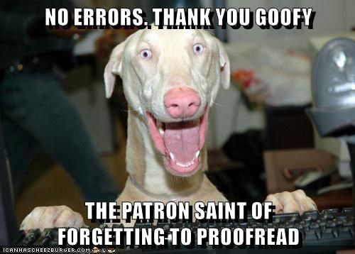 NO ERRORS. THANK YOU GOOFY THE PATRON SAINT OF FORGETTING TO PROOFREAD