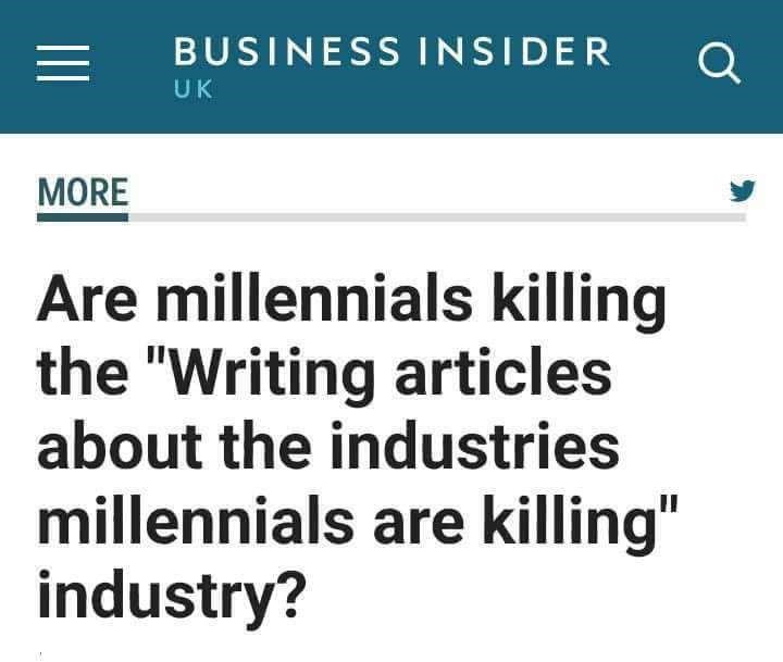 Millennials won't stop until they've killed absolutely everything.