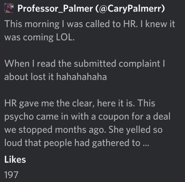 If you've ever worked retail or any customer-facing job, you will have met a customer who was disrespectful, entitled, treated you like an object and made some demand that store policy doesn't actually honor. With their sticky-fingered kids, boorish husbands and shrill battle cry of "the customer is always right" a Karen is a customer service person's personal nightmare. That's why we take extra joy in stories of entitled Karens who park in disabled spots and get tricked by parody customer service accounts. Oh and also when they demand their children get to taste painful hot sauce. There's a lot of fun times to be had.