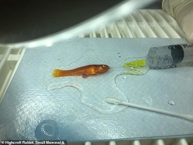 The emergency procedure saw vets catheterize the goldfish's mouth before anesthetizing Molly (shown here) and remove the mass within 40 minutes