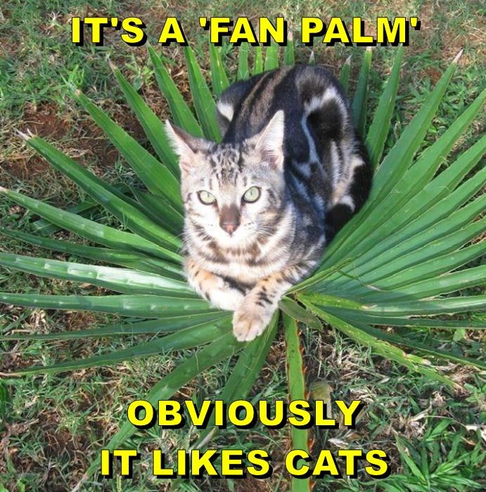 IT'S A 'FAN PALM' OBVIOUSLY IT LIKES CATS