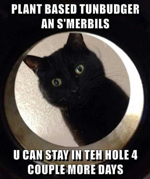 PLANT BASED TUNBUDGER AN S'MERBILS U CAN STAY IN TEH HOLE 4 COUPLE MORE DAYS