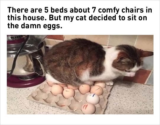 Cat sitting on eggs