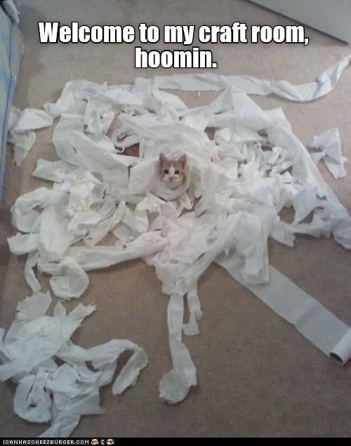 Welcome to my craft room, hoomin.
