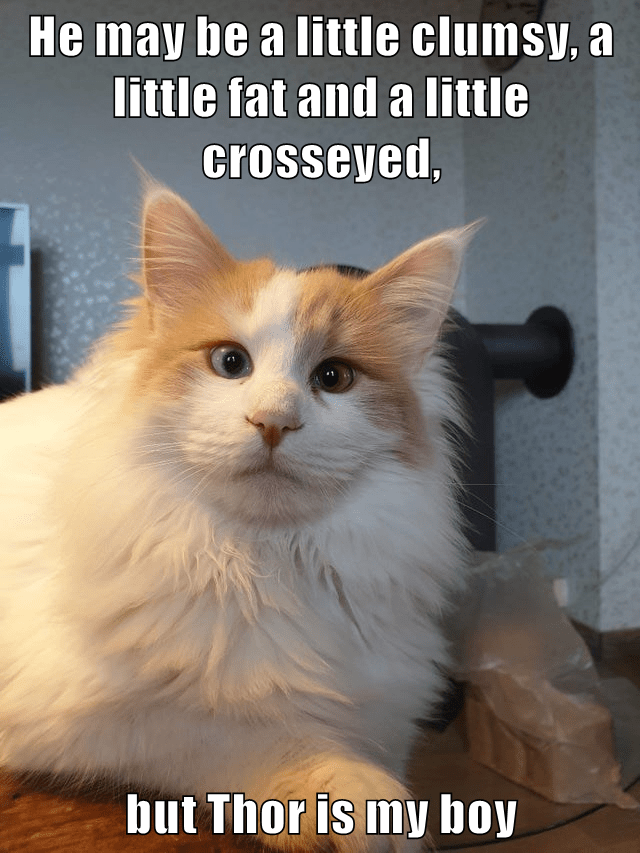 He may be a little clumsy, a little fat and a little crosseyed, but Thor is my boy