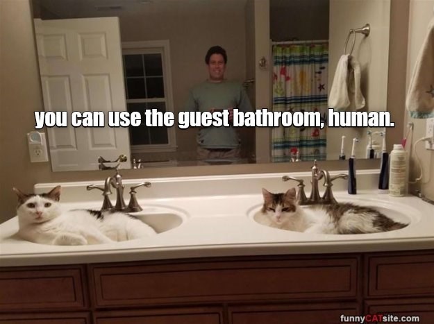 you can use the guest bathroom, human.