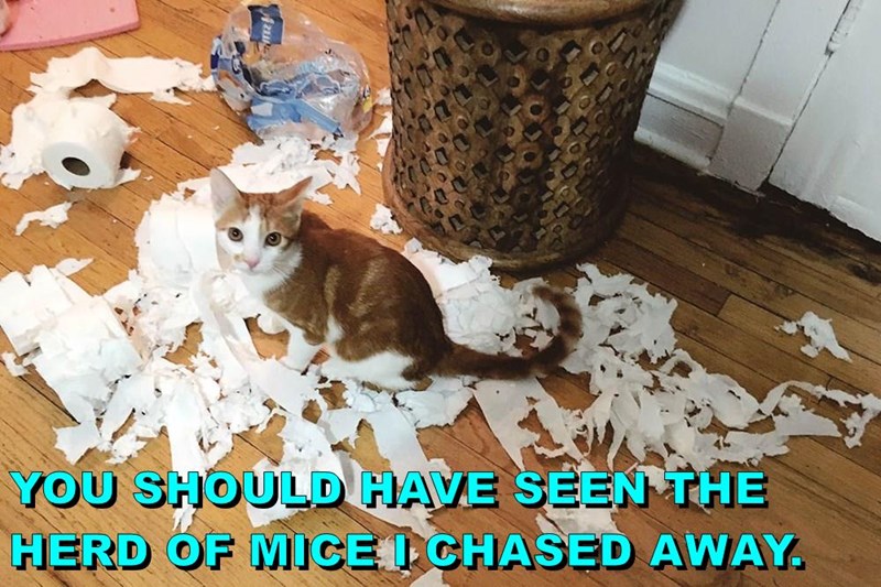 YOU SHOULD HAVE SEEN THE HERD OF MICE I CHASED AWAY.