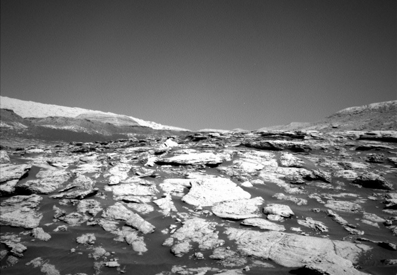These photos were shot by the navigation cameras, which only take black and white photos - unlike Curiosity's other photos. There are seventeen cameras attached to Curiosity, and as many areas of the Gale Crater are difficult for the six-wheeled rover to travel on, taking photos of the foreign landscape around it is the next most important thing Curiosity can do.