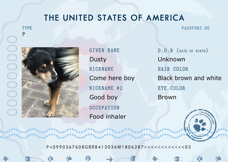 Dusty’s passport