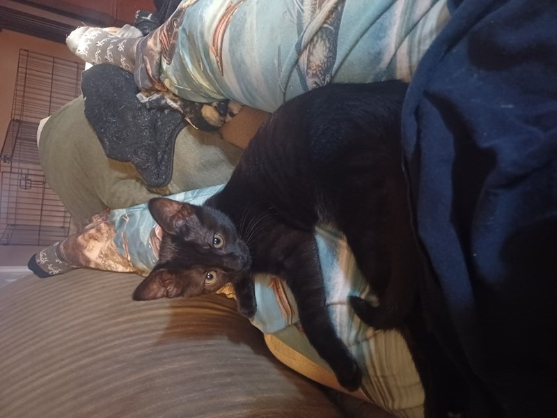 This is Marceline. Miss Marceline is your typical chick. In order for me to get any kind of snuggle loving I have to scoop her up and hold her in a certain way. Yesterday, I let her be. Today she has not left me alone. Shower a girl with attention and she doesn't want any part of it ... Ignore her and you are all she wants. TYPICAL. *I am a female*