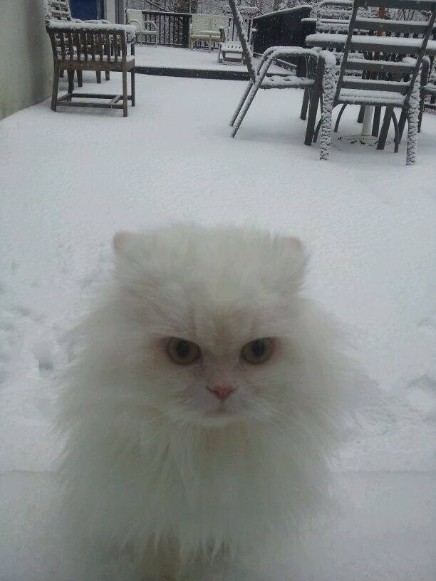 "Cat sees snow for the first time."