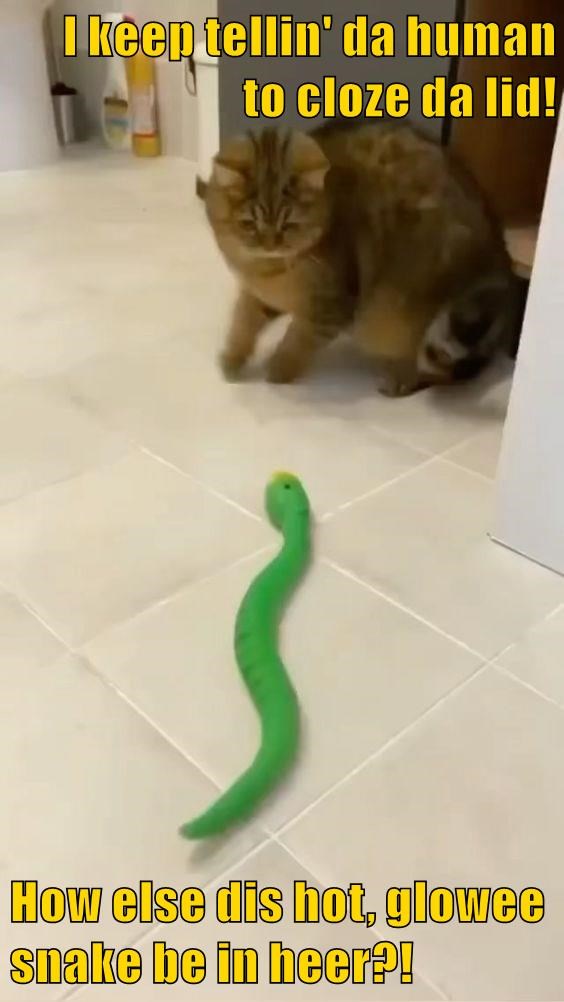 How else dis hot, glowee snake be in heer?!