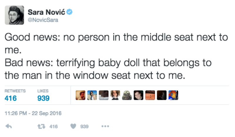 The Creepy Factor of Spending an Entire Flight Sat Next to a Creepy Doll is Palpable While a Woman Live-Tweets It