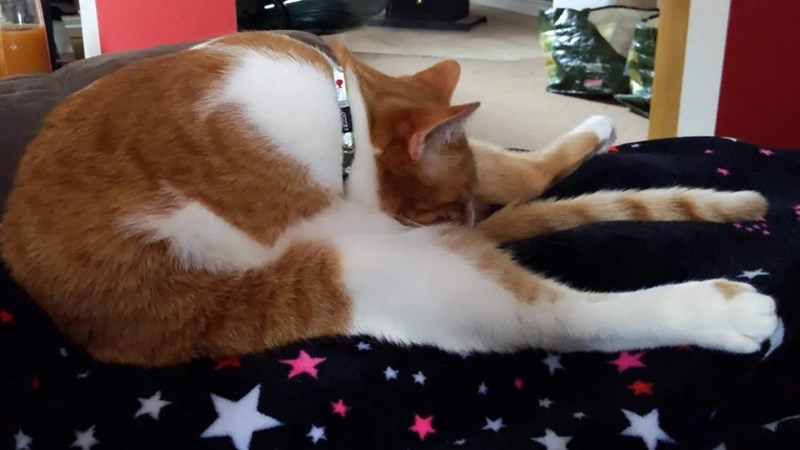 When is isn't falling asleep washing himself, sitting with his hind leg straight up in the air, he falls asleep like this...